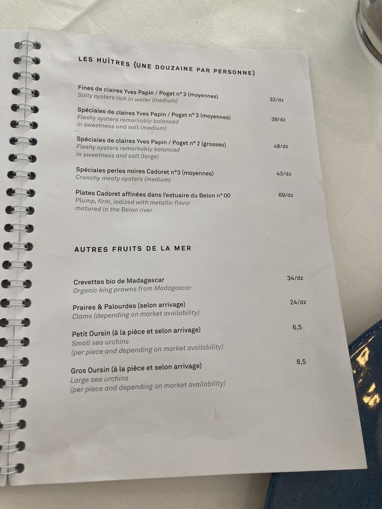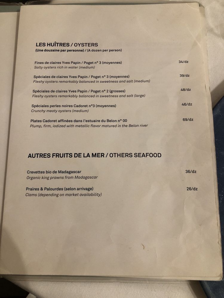 Huitrerie Régis Menu