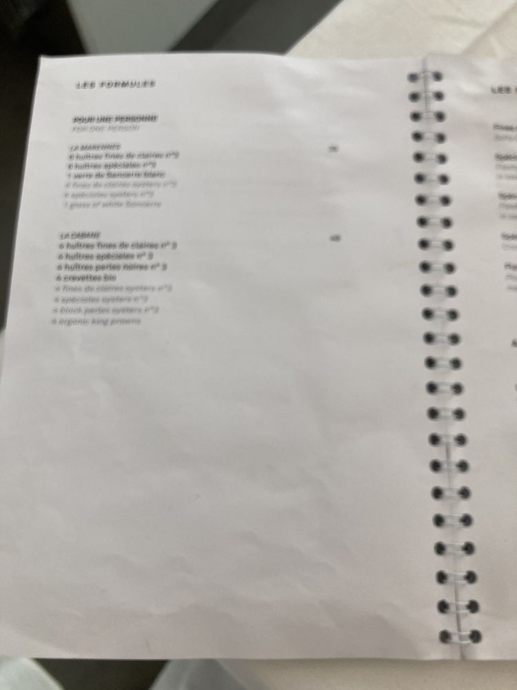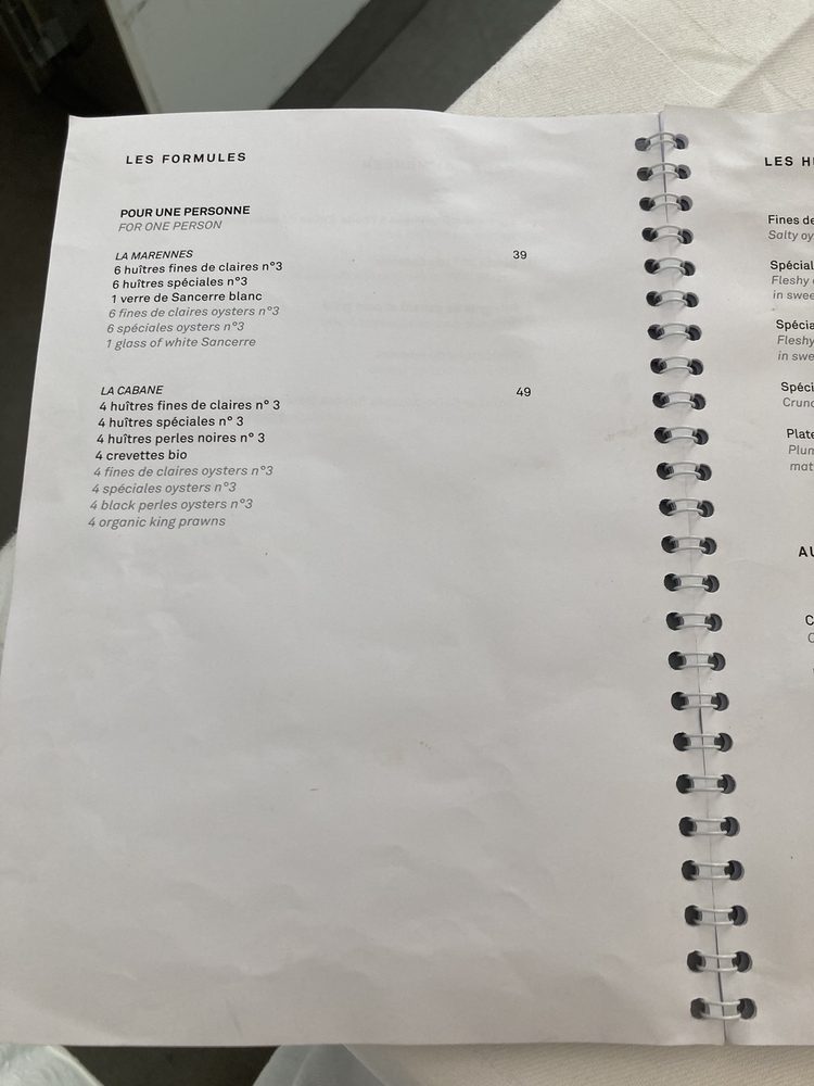 huîtres fines de claire n° / huîtres spéciales n° / verre de Sancerre blanc